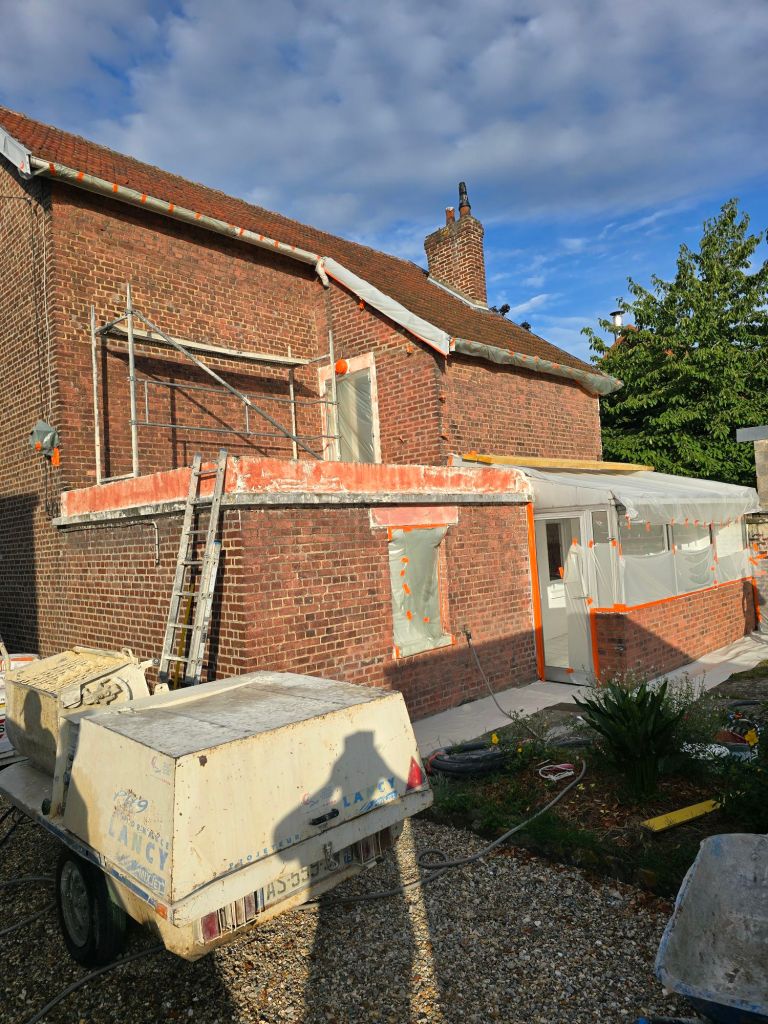 Réalisation d’une façade en joint à la chaux couleur ton pierre suite à une entreprise qui a refait tout les joints en ciment donnant de l’humidité à l’intérieur de la maison