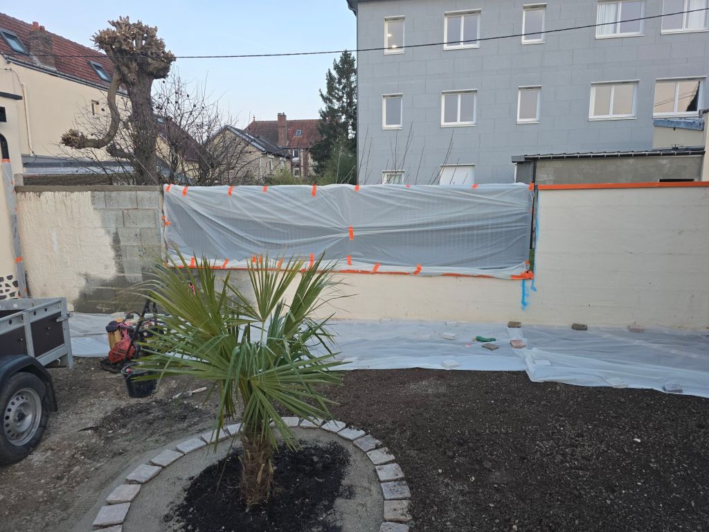 Pose d’une clôture avec sous bassement béton et occultant en composite couleur bois