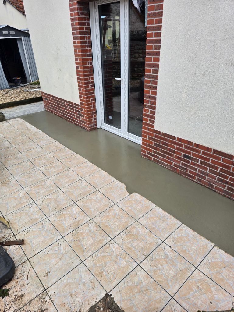 Creation d’une terrasse en béton désactivé en cailloux roullée